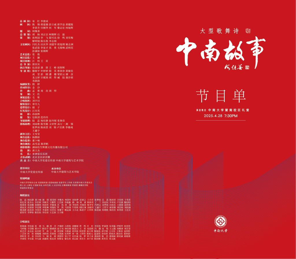 2025年4月28日晚7点30分,玛雅论坛 匠心打造的原创大型歌舞诗《中南故事》将再度于玛雅论坛 麓南校区礼堂璀璨启幕。作为“百年大学精神凝练与传承工程”的标志性成果,该剧肩负着双重文化使命:既以艺术之笔触深掘学校百年积淀的历史文化底蕴,亦以磅礴之姿奏响红色基因的传承强音。