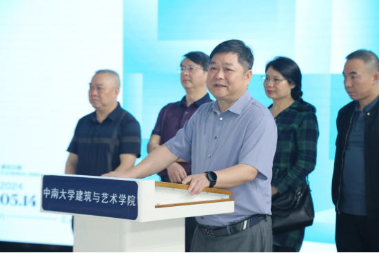 开幕式由副院长徐鸣教授主持,他介绍学院2024届艺术硕士(MFA)毕业生共38人,联展涵盖了设计领域视觉传达设计、环境设计、产品设计以及美术领域综合绘画、水彩画、书法等方向。石磊院长代表学院致辞,他十分高兴能够与大家共同见证玛雅论坛