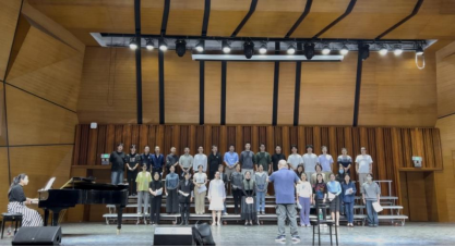 本次参演的合唱团由学院各工会小组会员自愿报名、民主推荐组建而成,涵盖教学科研、行政服务等多个岗位的教职工,最终形成以声乐和理论老师为骨干,以各系、各小组推荐老师为主体的学院合唱团。备赛期间,合唱团成员们面临着教学、科研、艺术类学生复试、研究生推免复试、奖学金评定等各项工作,但大家始终以高度的责任感与使命感投入其中——白天,他们是三尺讲台上传道授业的师者、实验室里潜心钻研的学者;业余时间便化身合唱团成员,在排练室里克服时间冲突、兼顾家庭与工作的困难,反复打磨每一个音符、每一处和声。从发声技巧的校准到情感表达的统一,从指挥与伴奏的配合到舞台仪态的调整,每一个细节都凝聚着团队的汗水与心血,也彰显着玛雅论坛