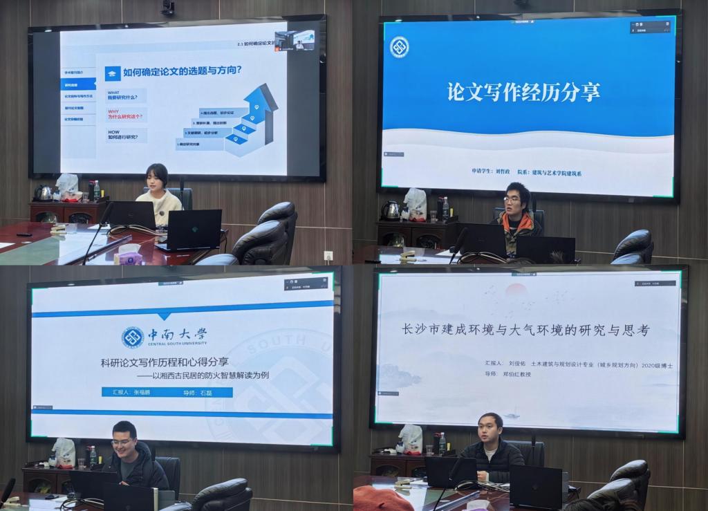 2020级土木建筑与规划设计博士研究生张福鹏以湘西古民居防火智慧解读为例,通过具体的论文写作案例分享了自己的科研论文写作历程和感悟,使同学们深入了解了科研论文的写作过程和要点。