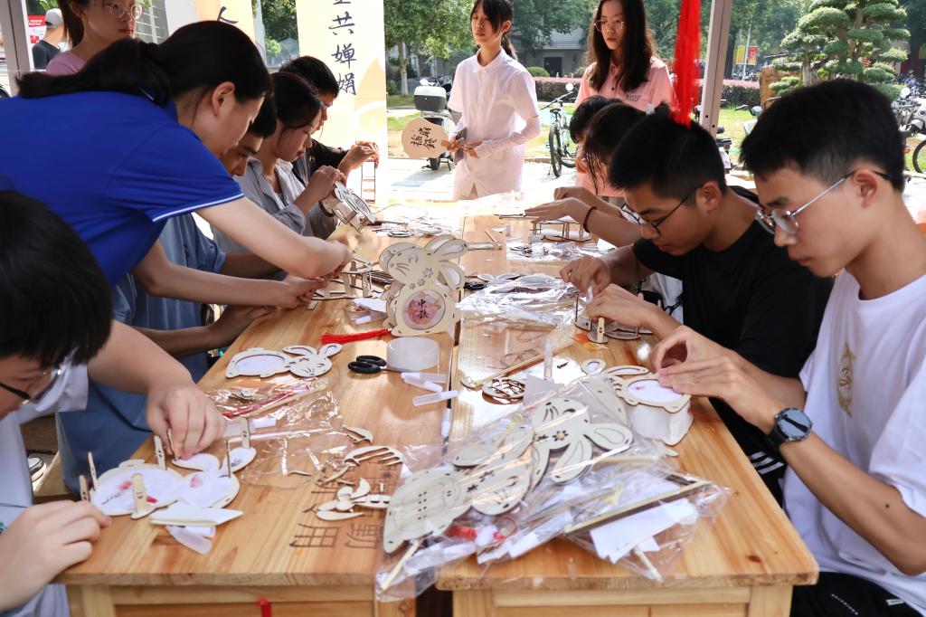 心手相连,共制非遗之美。非遗体验区成为同学们争相涌动的焦点,热闹非凡。学生们亲手制作精美的中秋灯笼与独具匠心的漆扇,点亮心中对传统文化的向往。