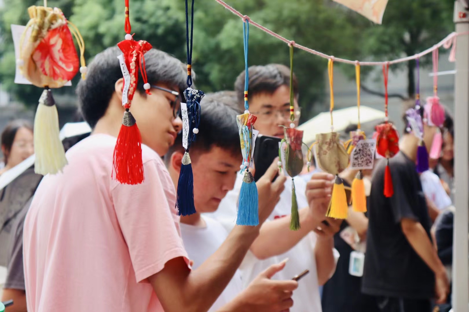 香囊飘香,共寻中秋之谜。在盲盒答题区,同学们兴致勃勃地挑选着各式香囊,每一个香囊里都蕴含着一个待解的谜题。他们小心翼翼地打开香囊,揭晓谜底的瞬间,整个现场顿时洋溢着欢声笑语。