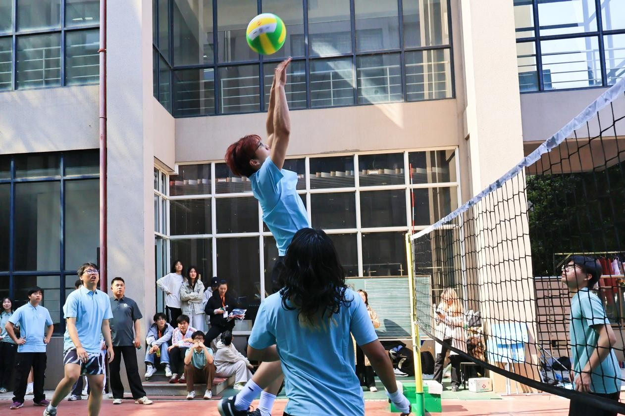 赛场上,师生们默契配合、攻防有度,将日常训练的扎实功底化作行云流水的技术动作。精准的二传为进攻架起桥梁,迅猛的扣杀引爆全场欢呼,每一次飞身救球的拼搏瞬间,都赢得观众席掌声雷动。随着比分交替上升,比赛进入白热化阶段,队员们额头的汗水折射着挑战自我、永不言弃的体育精神,而场下加油”“稳住的呐喊声,更凝聚着师生对健康生活的共同追求。