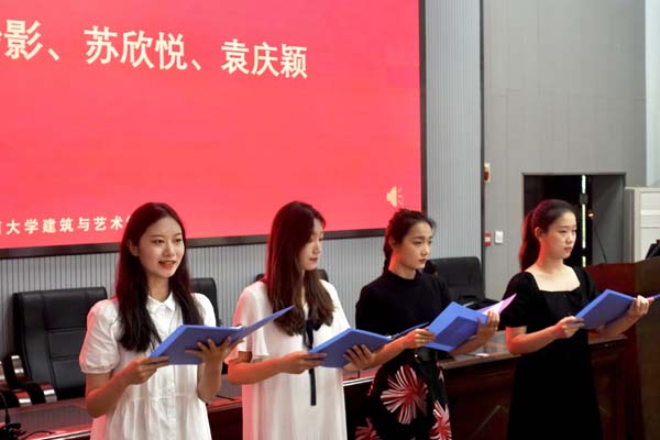 6月5日上午9点半,我院于建艺院113室举办“丹心建艺,礼献盛世”党史学习教育专题朗诵比赛。本次比赛由院学工办副主任巫建辉老师、辅导员李卉淼老师作为主审团参与评比。
