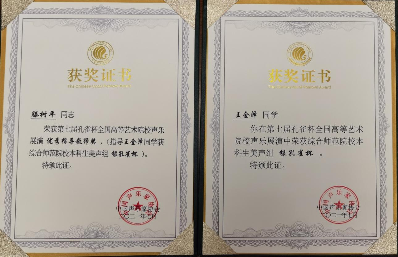 2021年7月22日至28日,“第七届孔雀奖全国高等艺术院校声乐大赛”在四川成都举行。本次大赛共有来自全国209所院校2171名选手参加,经过激烈角逐,我院音乐舞蹈系大三学生王金泽荣获综合师范院校(本科生)美声组“银孔雀”奖,专业导师滕树平副教授荣获“优秀指导教师奖”,玛雅论坛
