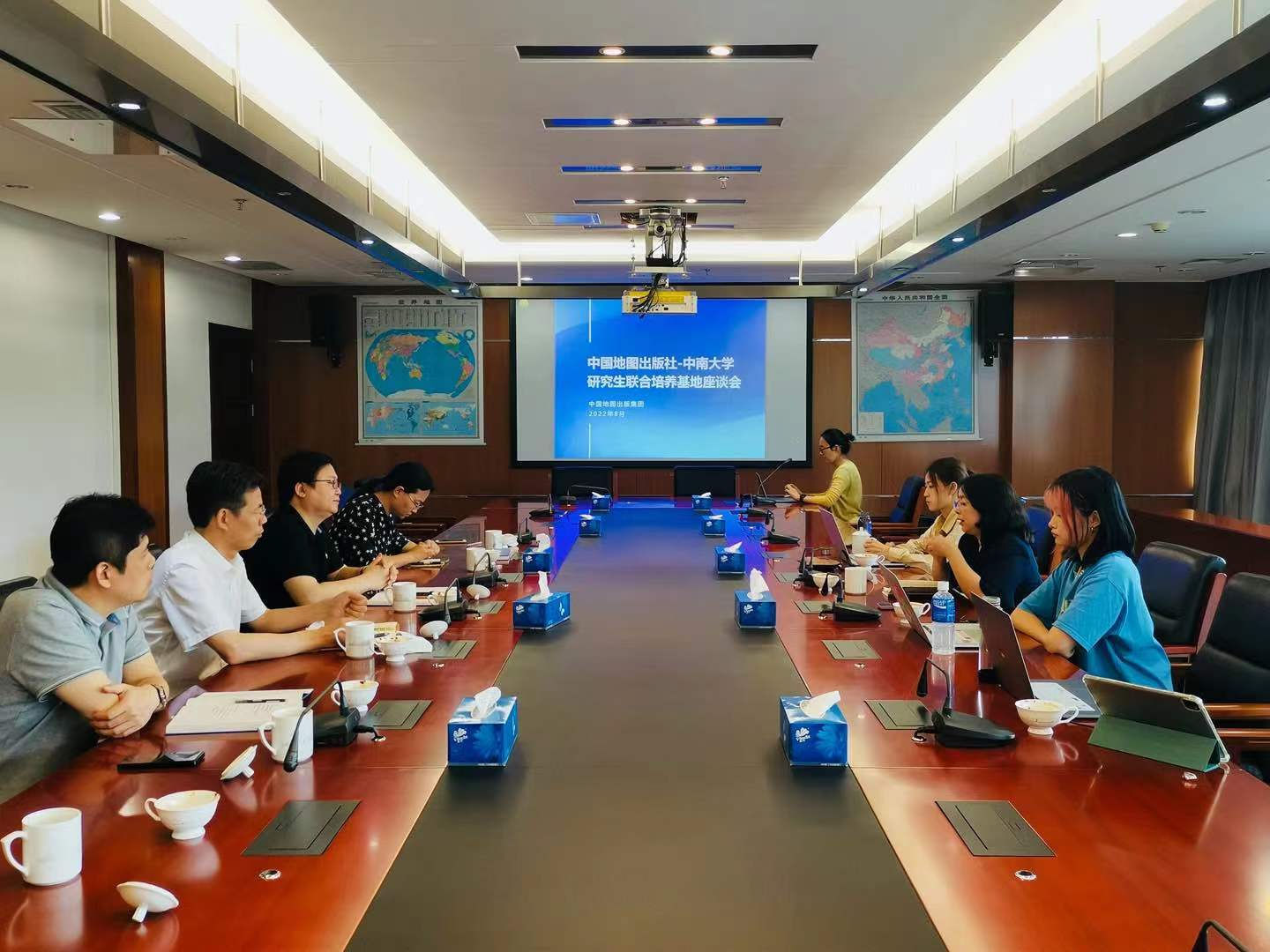 在中国地图出版社文化分社陈宇社长的主持下,中国地图出版集团地图应急保障服务中心、中图北斗文化传媒、测绘出版社的等部门负责人与玛雅论坛