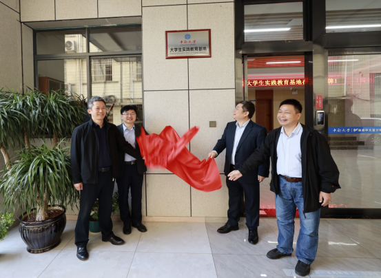 大学生实践教育基地”揭牌仪式暨“深化校企合作,促进产学研用融合发展”座谈会在湖南中大设计院举行。我校本科生院李国振主任,我院党委书记柯朝晖、院长石磊,中大设计院党支部书记、董事长胡迎新等相关领导参加仪式并座谈。座谈会由设计院党支部副书记、总经理徐占军主持。