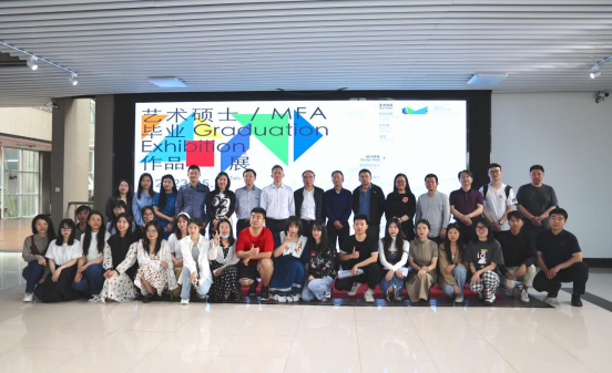 2023届“艺术硕士(MFA)毕业展”如期开幕,院党委书记柯朝晖、院党委副书记张金学、副院长徐鸣、刘雪梅以及艺术硕士参展师生代表一起出席了展览开幕式。